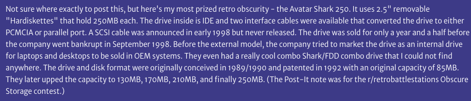 A: Yes the Shark 250 is backward compatible to the 170 MB and should read and write to those disks. We have not tried any other avatar disk other than the 170 MB in the Shark.