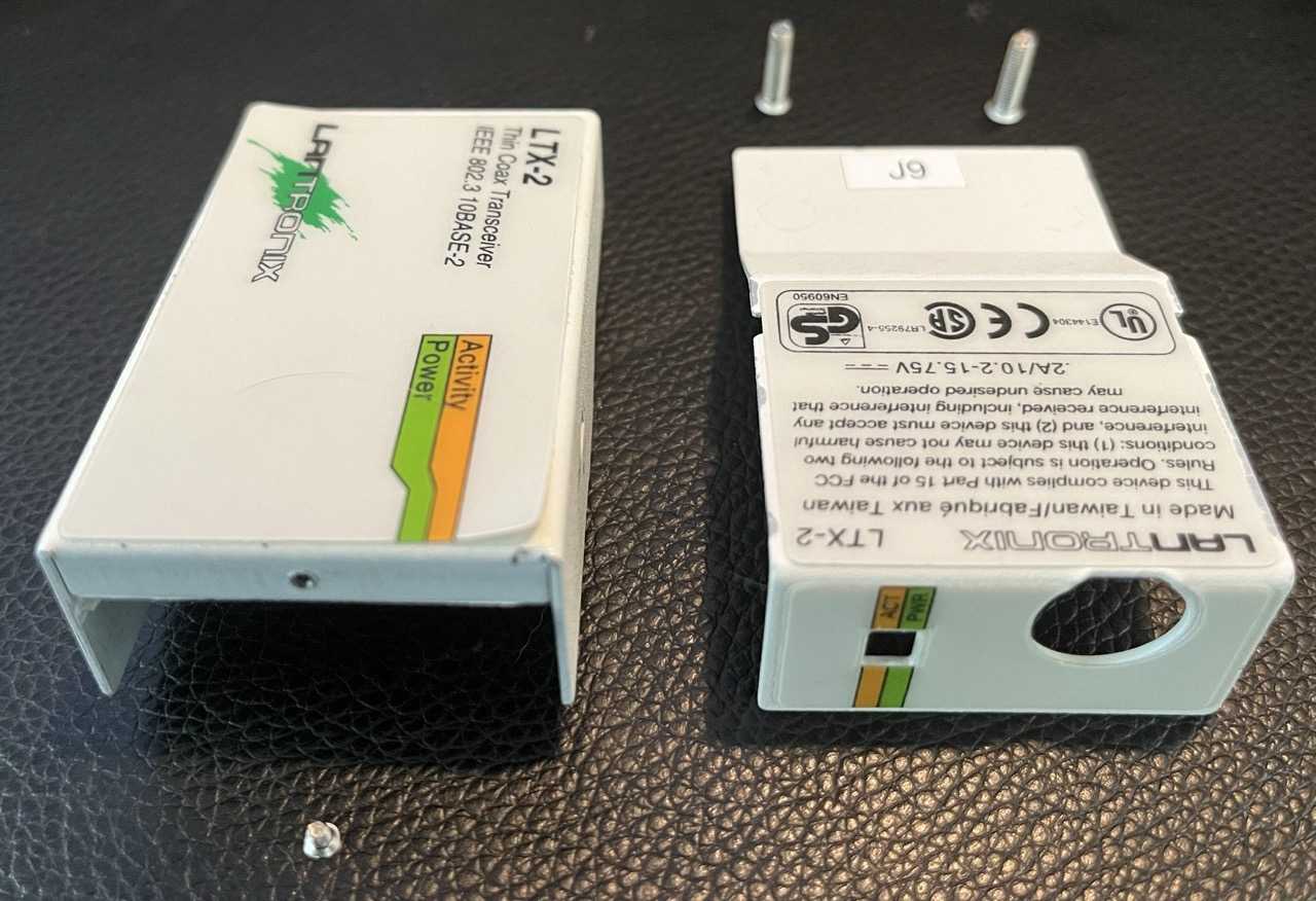 10base-2 (”ThinWire”) to AUI transceiver.