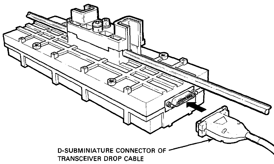 Only the last AUI connector (the “Global” connector, number 9, with a Socket/Female connector) is designed to accept an AUI transceiver module. The remaining 8 are to to be directly connected to the AUI connector of a computer or router using a DE-15 extension (“male-to-female”) cable.
