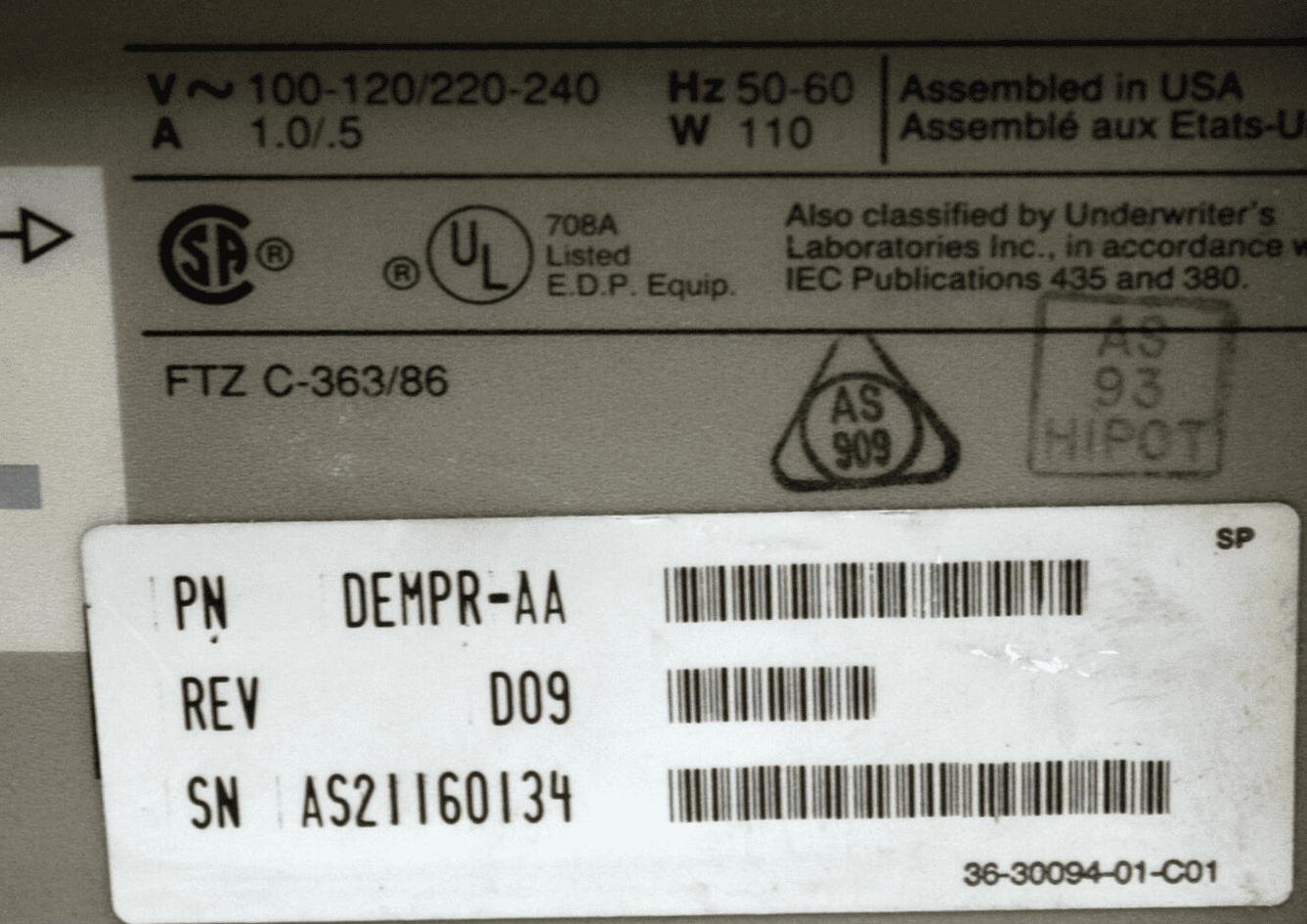 DEC Microserver. -AA variant is 120v, -AN is 240v.