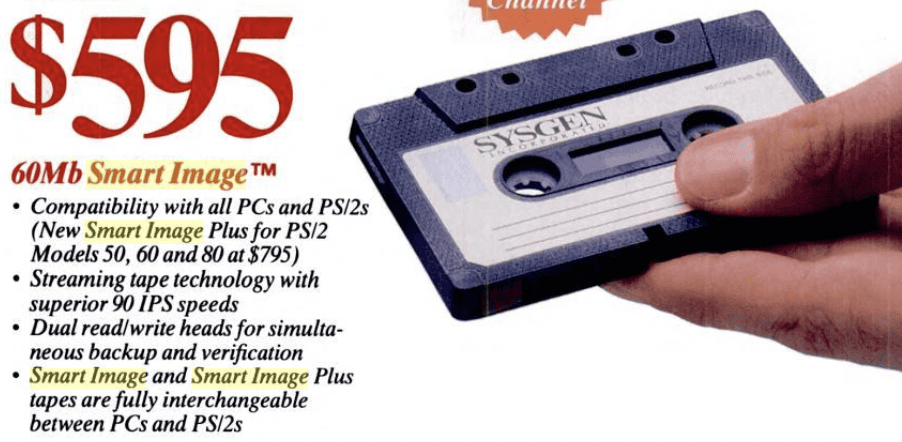 Most “Smart Image” drives use the style of tapes also used by the Teac MT-2ST series drives, such at the CT-500H, CT-600H and compatible. They look a lot like standard audio cassette tapes but have a “notch” cut out of the top.